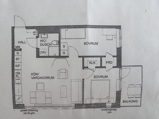 2 rum lägenhet på 60 m²