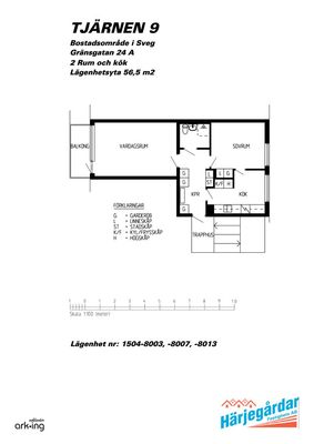 2 rum lägenhet på 56 m²