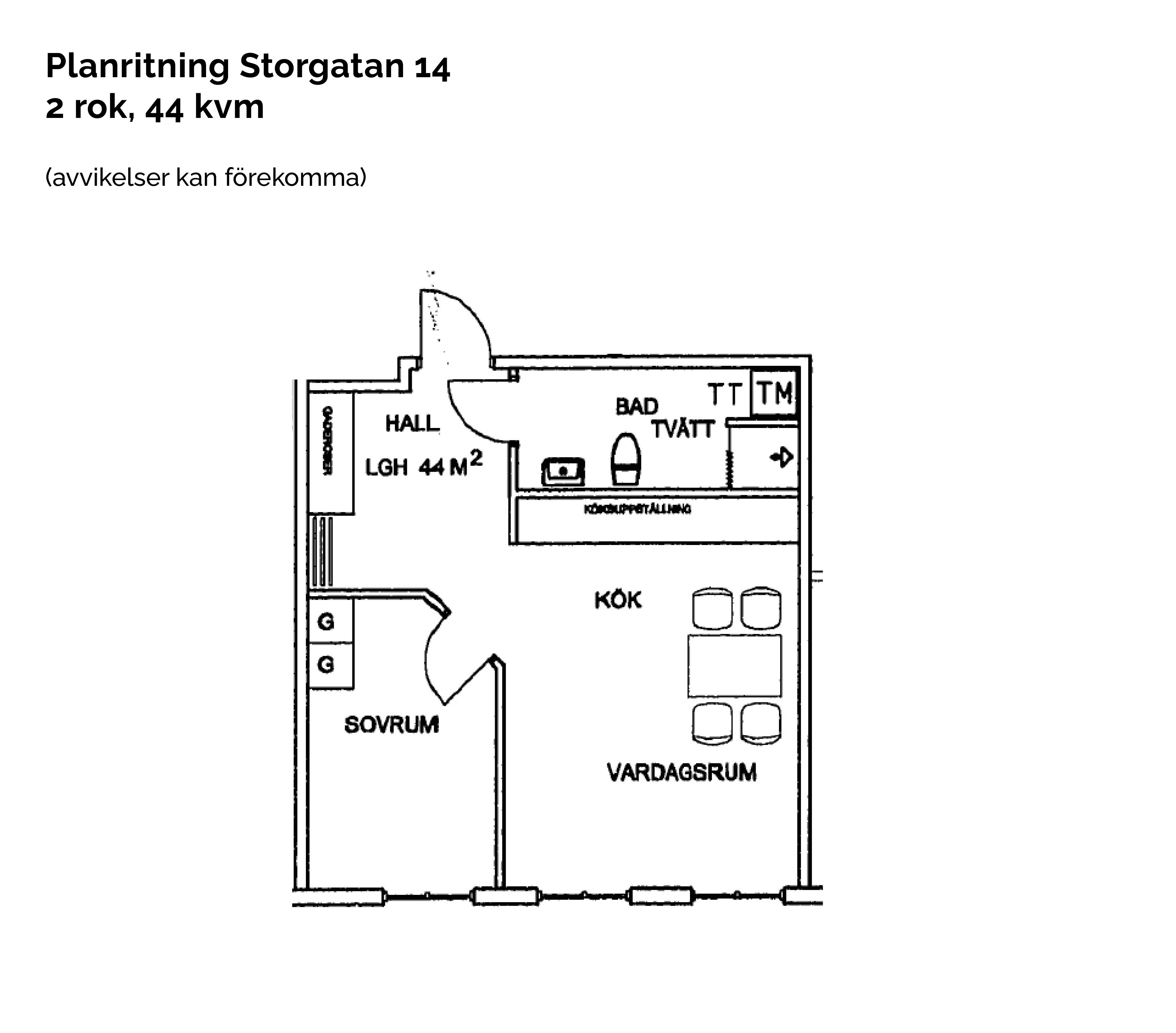 2 rum lägenhet på 44 m²