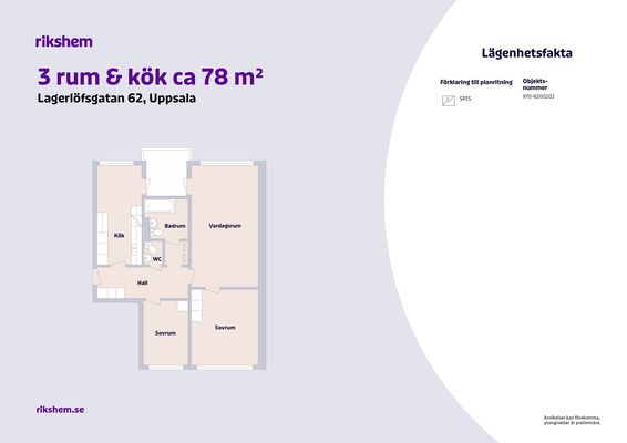 3 rum lägenhet på 78 m²
