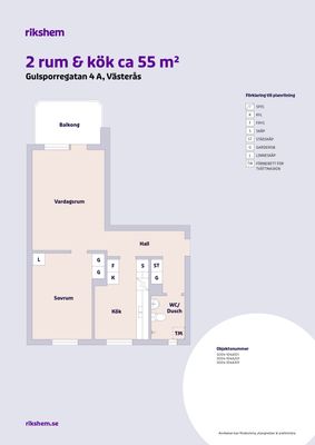 2 rum lägenhet på 55 m²