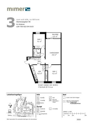 3 rum lägenhet på 68 m²