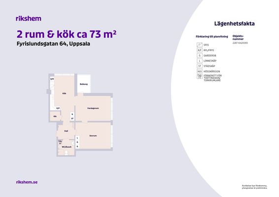 2 rum lägenhet på 73 m²