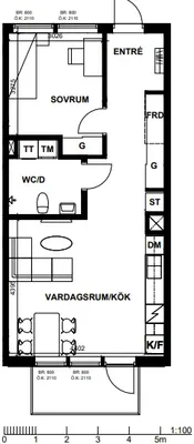 2 rum lägenhet på 45 m²