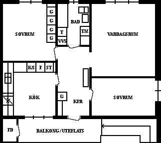 3 rum lägenhet på 75 m²