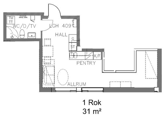 1 rum lägenhet på 31 m²