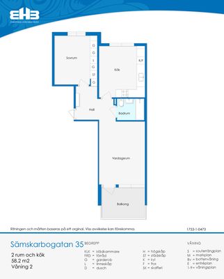 2 rum lägenhet på 58 m²