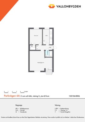 2 rum lägenhet på 62 m²