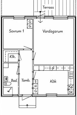 2 rum lägenhet på 33 m²