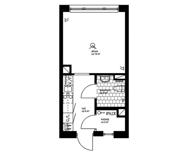 1 rum lägenhet på 20 m²
