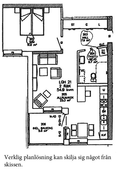2 rum lägenhet på 55 m²