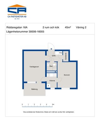 2 rum lägenhet på 45 m²