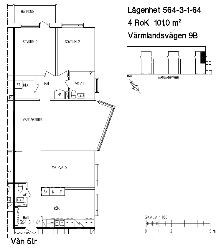 4 rum lägenhet på 101 m²