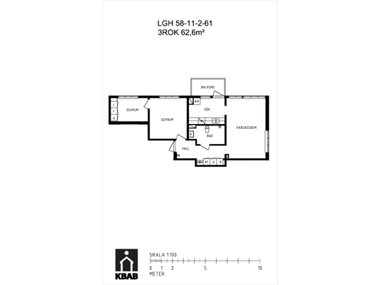 3 rum lägenhet på 62 m²
