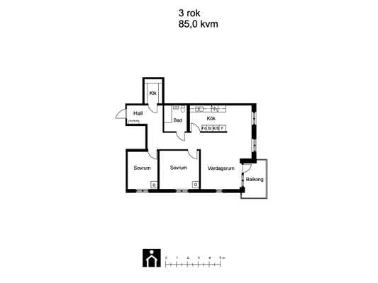 3 rums på 85 m²
