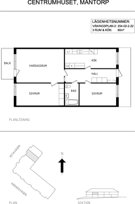 3 rum lägenhet på 80 m²