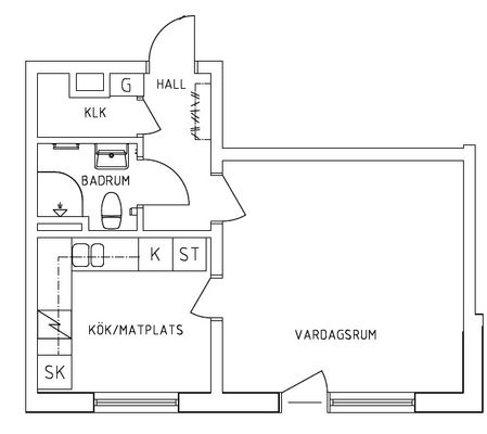 1 rum lägenhet på 30 m²