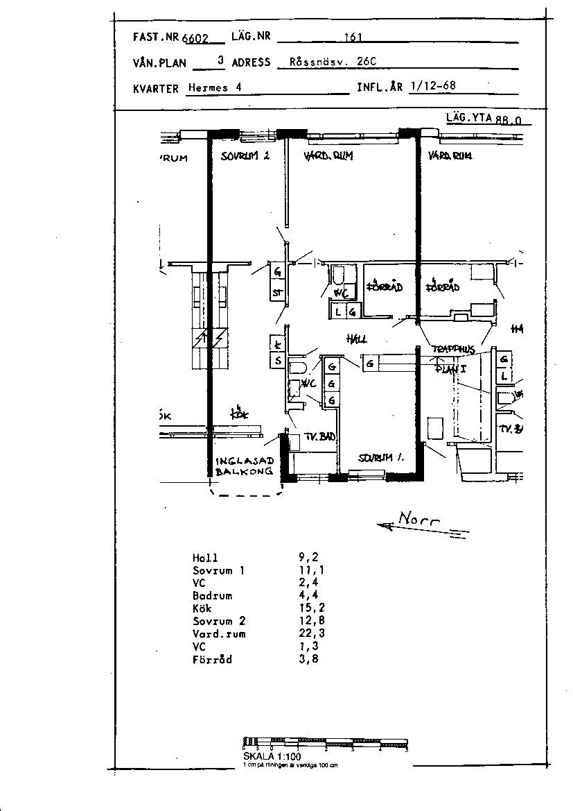 3 rum lägenhet på 88 m²