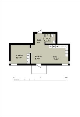 1 rum lägenhet på 46 m²