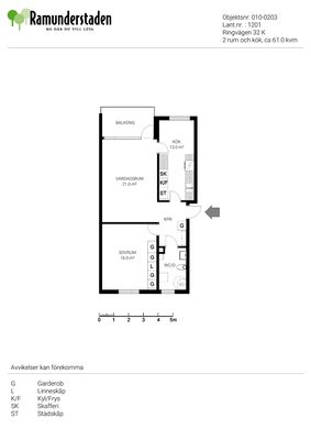 2 rum lägenhet på 61 m²
