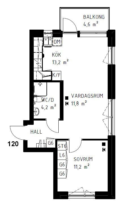 2 rum lägenhet på 46 m²