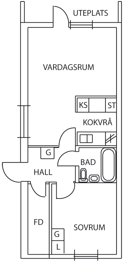 2 rum lägenhet på 46 m²