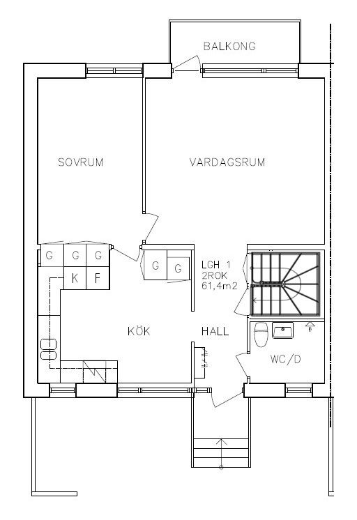 2 rum lägenhet på 60 m²