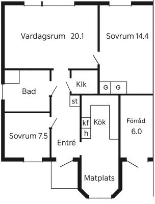 3 rum lägenhet på 76 m²