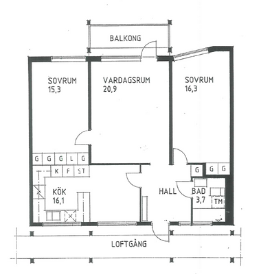 3 rum lägenhet på 68 m²