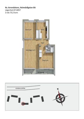 3 rum lägenhet på 76 m²