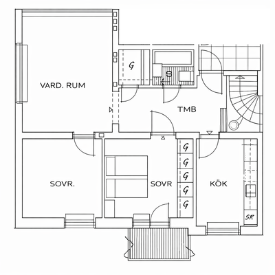 2 rum lägenhet på 57 m²