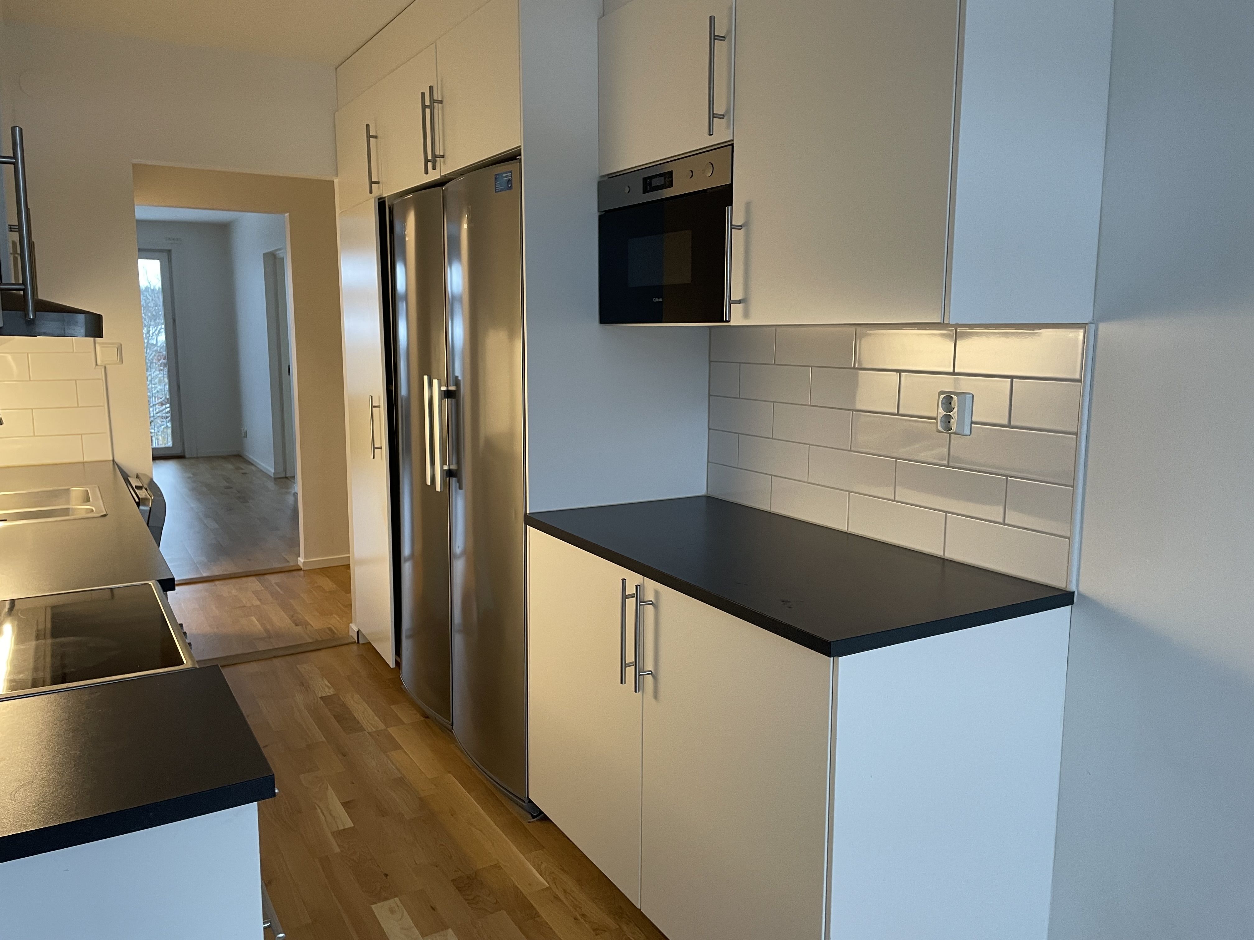 Med en storlek på 66 kvadratmeter erbjuder denna lägenhet gott om utrymme för både vardagsliv och avkoppling. Lägenheten renoverades 2020 och utrustades med bekvämligheter såsom diskmaskin, inbyggd micro, tvättmaskin och torktumlare. Köket har vita skåpsluckor med rostfria vitvaror och badrummet är helkaklat med golvvärme. Via den egna ingången men även köket nås balkongen som har skönt österläge.