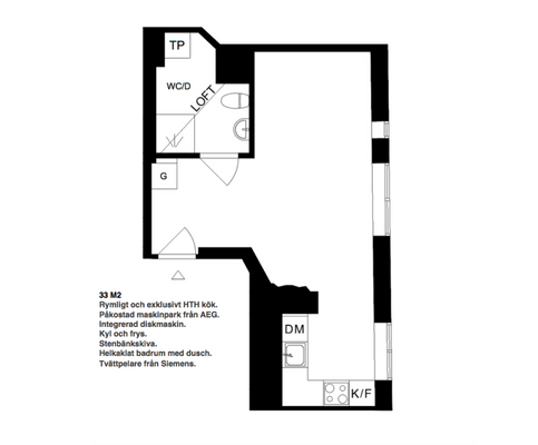 2 rum lägenhet på 38 m²