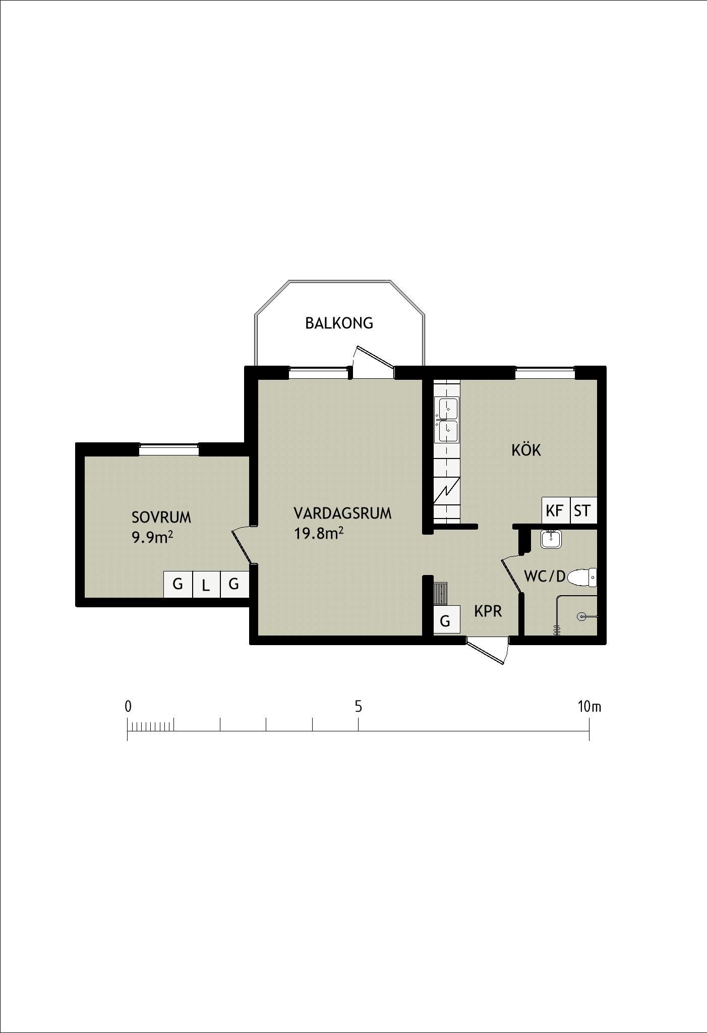 2 rum lägenhet på 60 m²