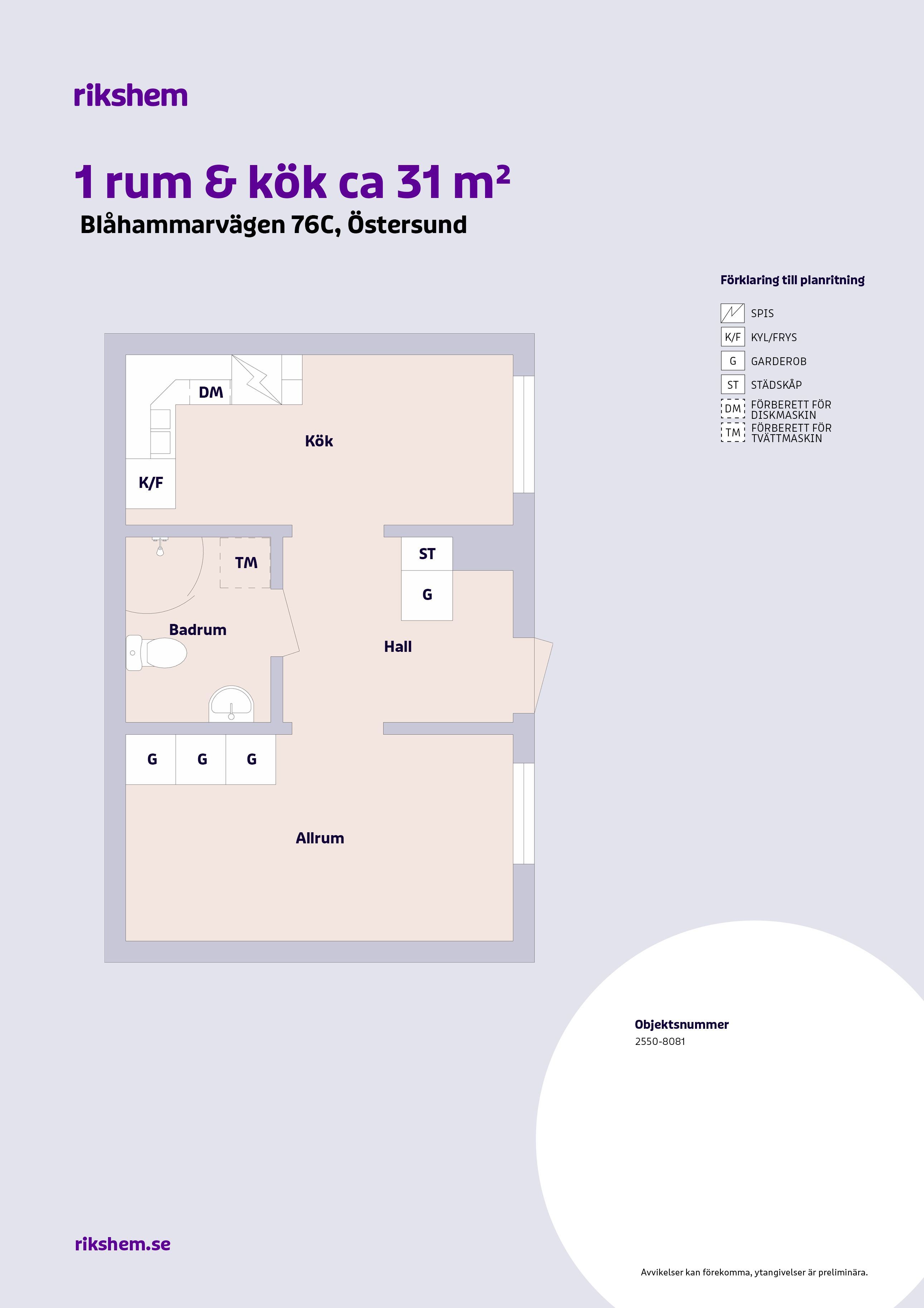 1 rum lägenhet på 31 m²