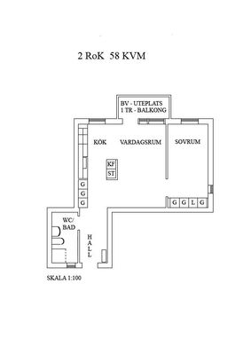 2 rum lägenhet på 56 m²