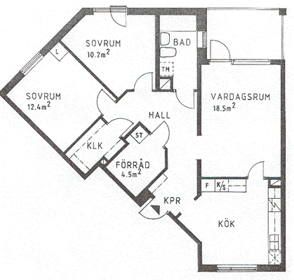 3 rum lägenhet på 74 m²