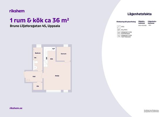 1 rum lägenhet på 24 m²