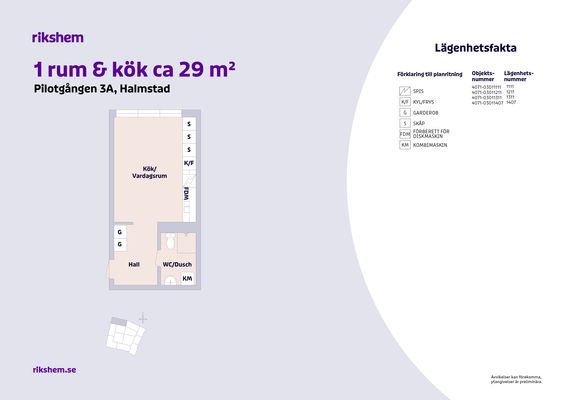 1 rum lägenhet på 29 m²