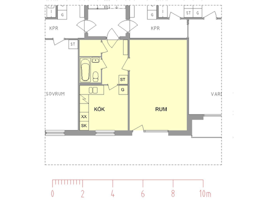 1 rum lägenhet på 34 m²