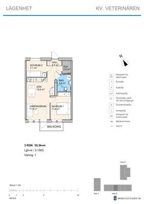 3 rum lägenhet på 55 m²