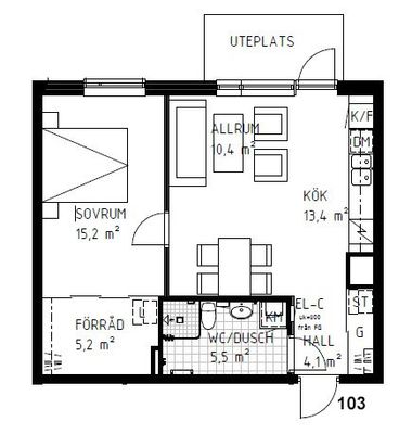 2 rum lägenhet på 41 m²