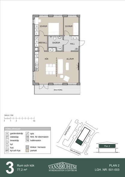 3 rums lägenhet på 77 m²