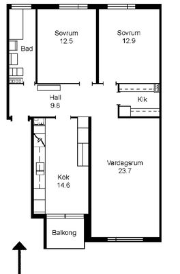 3 rum lägenhet på 72 m²