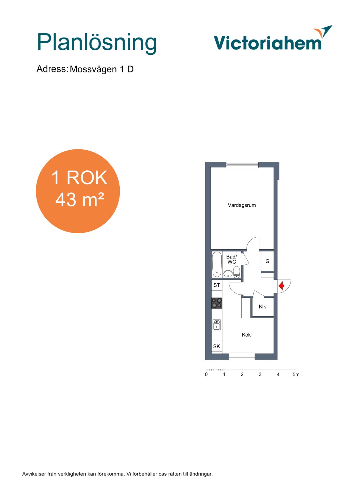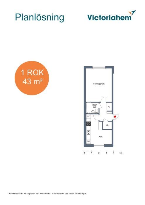 1 rum lägenhet på 43 m²