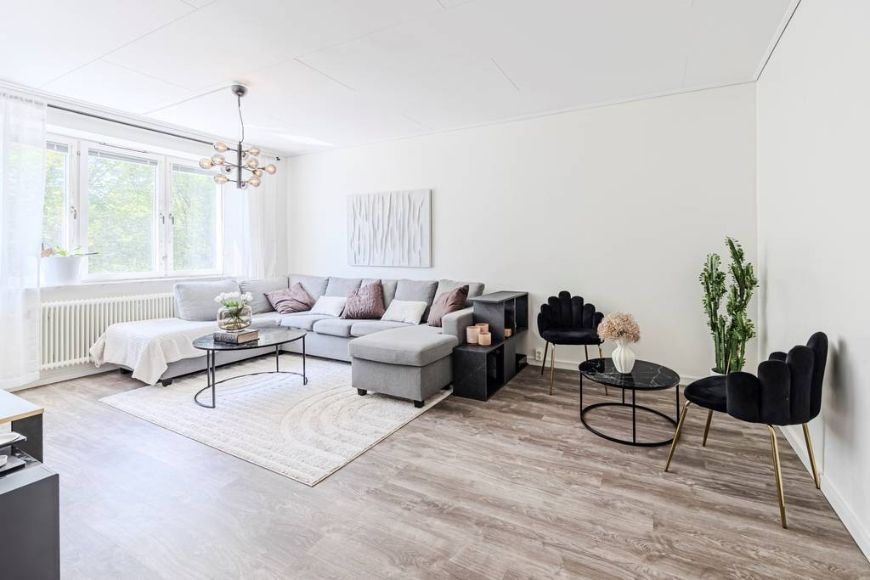 Lägenheten har hög standard med rymligt badrum med dusch, klinker och kakel, tvättmaskin, torktumlare eller kombimaskin och ett modernt kök med vita luckor. Väggarna är målade i klassiskt vitt och golven är genomgående i ekparkett. Här kommer du bo i en välplanerad lägenhet i bra läge och med uteplats/balkong.