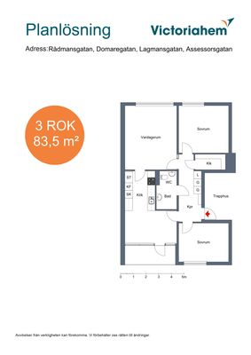 3 rum lägenhet på 82 m²