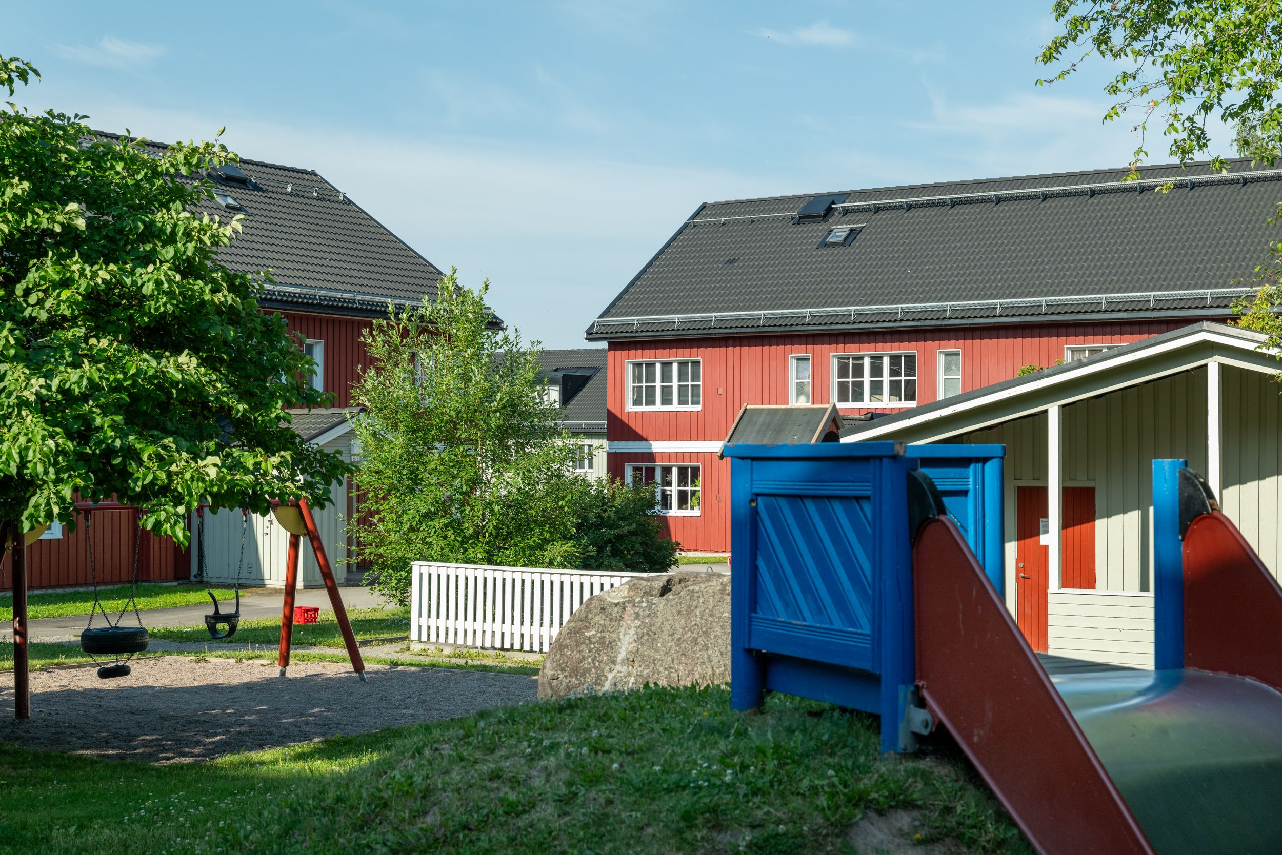 Här kan du låta barnen springa själva mellan lekplatserna. I Bojsenburg har du till och med en egen strand.