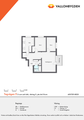 3 rum lägenhet på 64 m²
