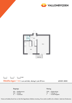 1 rum lägenhet på 39 m²